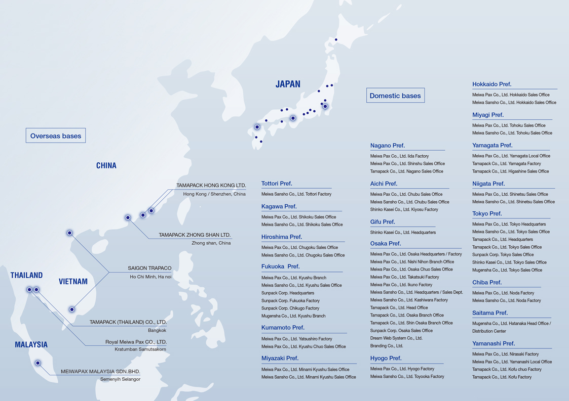 我们以软包装领域的MEIWAPAX为中心,凝聚在各类型包装产品领域的专业企业的力量到一起,并且通过重新合并重组,更加有效灵活地合作,一同强力地推行“与客户共创价值”的理念。“Package your vision”的集团旗帜已经表明了:我们不会停留在只提供包装产品的阶段,我们要支援客户实现他们到达能联想到的领域。例如,如果能综合发挥软包装、纸制品、瓦楞制品的特长,就能发挥至今没有的创造性、开拓全新的可能。我们期待,通过强化集团的力量,集团内的各企业的专业能力几何倍地增强。让我们面向世界,一同创造引领时代的价值。